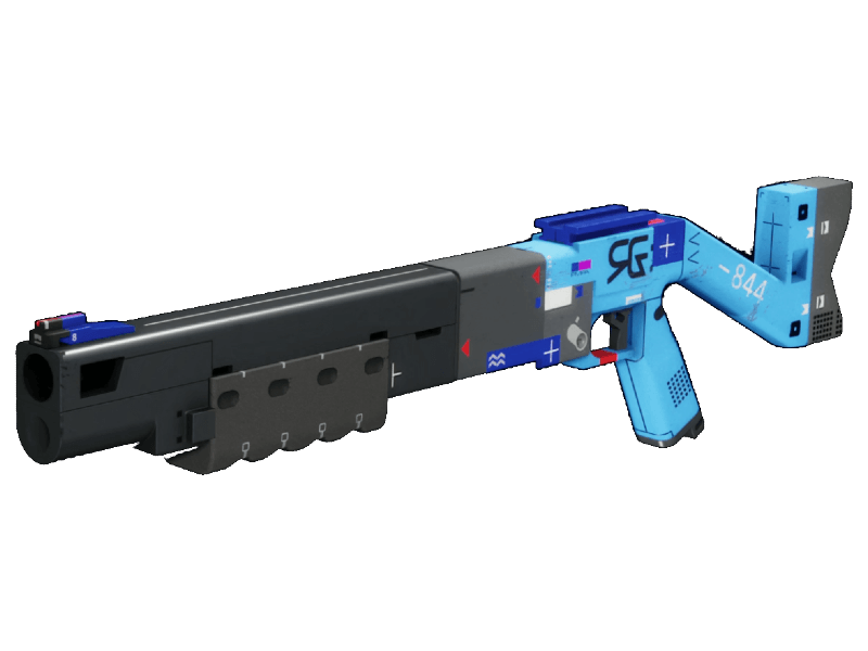 Pump-action shotgun kept for close encounters. Reloads one MIPS cartrige at a time.
